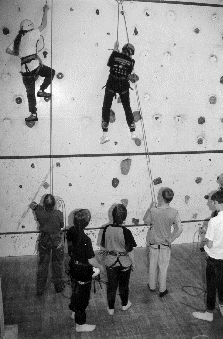 Kulttuurit kohtaavat päivillä harjoiteltiin seinäkiipeilyä norssin tulevaa omaa kiipeilyseinää silmälläpitäen.