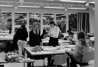 valmistaa yhdeksäsluokkalaisten tyttöjen kanssa lastenvaatteita